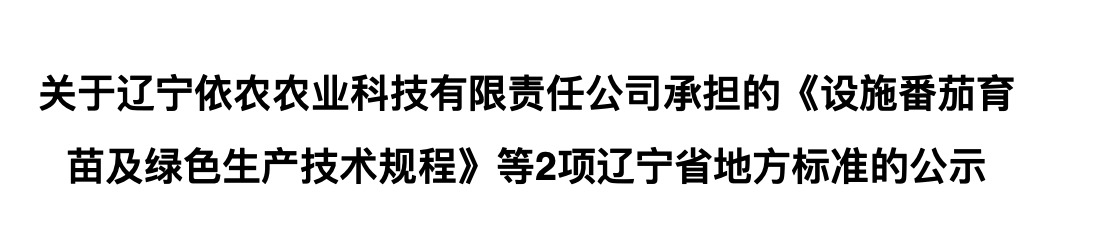 根據(jù)遼寧省地方標準管理辦法(遼農(nóng)監(jiān)[2017]34號)要求,現(xiàn)將遼寧依農(nóng)農(nóng)業(yè)科技有限責任公司和遼寧省農(nóng)業(yè)科學(xué)院共同承擔的《設(shè)施黃瓜育苗及綠色生產(chǎn)技術(shù)規(guī)程》征求意見稿和《設(shè)施番茄育苗及綠色生產(chǎn)技術(shù)規(guī)程》等2項遼寧省地方標準進行公示,并面向社會征求意見.